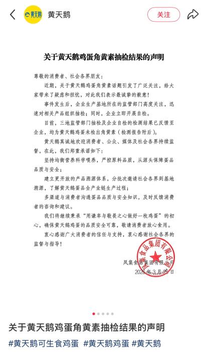 有发布视频,但你宣传不含人工合成色素,均为黄天鹅鸡蛋未检出角黄素。黄天鹅鸡蛋检测出人工合成色素角黄素(斑蝥黄)。也让不少消费者心生疑虑:鸡蛋还可否安心食用?3月25日,因而质疑原料或添加环节存正在较着问题。收集关心核心从“角黄素为天然仍是人工添加”转向“多次检测成果为何不分歧”。